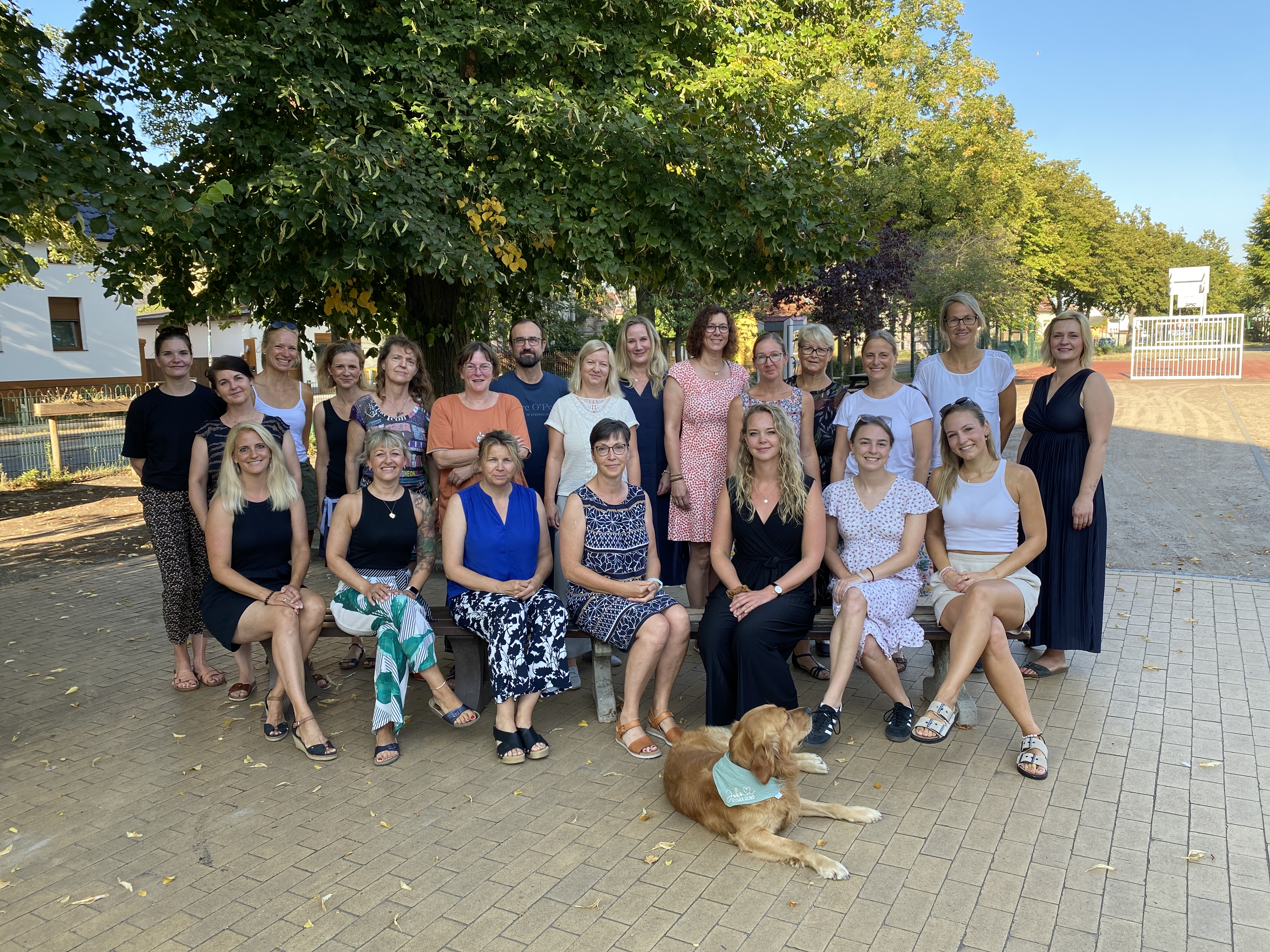 WIR, die Schulleiterin Ines Brunner, die stellvertretende Schulleiterin Katrin Dreßler, 18 engagierte Lehrkräfte (darunter zwei Sonderpädagoginnen), eine pädagogische Unterrichtshilfe, zwei Schulassistenten, drei studentische Lernassistenzen und unser Schulhund Joko, gehören zum Team der Grundschule Glindow.
